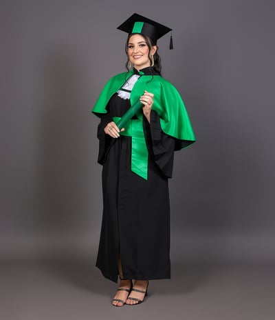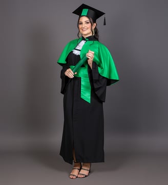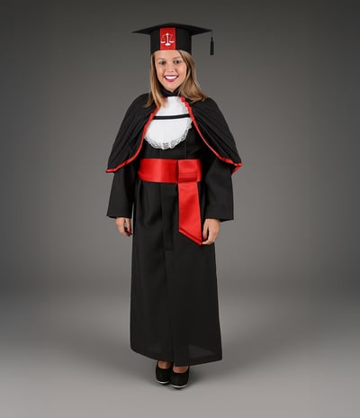 Incluso: Beca em Oxford + pelerine plissado + faixa na cor do curso + jabour + capelo.